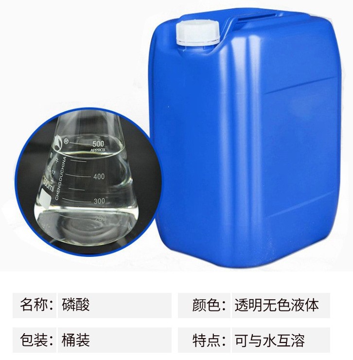 熔點(diǎn)42.35℃,比重1.70,高沸點(diǎn)酸,可與水以任意比互溶,沸點(diǎn)213℃時(shí)(失去1/2水),則生成焦磷酸。加熱至300℃時(shí)變成偏磷酸。相對(duì)密Chemicalbook度181.834。易溶于水,溶于乙醇。磷酸是一種常見(jiàn)的無(wú)機(jī)酸,是中強(qiáng)酸。其酸性較硫酸、鹽酸和硝酸等強(qiáng)酸弱,但較醋酸、硼酸、碳酸等弱酸強(qiáng)。磷酸與碳酸鈉反應(yīng)時(shí)在不同的pH下,可生成不同的酸式鹽。能刺激皮膚引起發(fā)炎,破壞肌體組織。濃磷酸在瓷器中加熱時(shí)有侵蝕作用。有吸濕性,密封保存。磷酸主要應(yīng)用領(lǐng)域如下:金屬表面鋼管磷化處理,配制電解拋光液和化學(xué)拋光液;鋁制品的拋光;制造各種磷酸鹽、飼料級(jí)磷酸氫鈣、酸式磷酸錳、焦磷酸鉀;醫(yī)藥工業(yè)用于制造甘油磷酸鈉、磷酸鐵,制造青霉素時(shí)調(diào)節(jié)酸堿度;用于制造磷酸鋅作為牙科補(bǔ)牙時(shí)粘合劑;塑料用于酚醛樹(shù)脂縮合的催化劑Chemicalbook;染料及中間體生產(chǎn)用的干燥劑;印刷用于配制揩去膠印彩印版上污點(diǎn)的清洗劑;火柴用于浸漬火柴梗,能使燃燒過(guò)的火柴梗不成灰而成炭狀,使用時(shí)較為安全;冶金用于生產(chǎn)耐火泥,提高煉鋼爐壽命;橡膠用于漿料的凝固劑及生產(chǎn)無(wú)機(jī)粘結(jié)劑的原料;涂料用于金屬防銹漆;食品工業(yè)用作酸性調(diào)味劑。